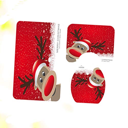 OVAST 3-teiliges Badezimmer-Teppich-Set mit Konturmatte, Toilettendeckelbezug, Rentier-Muster, Sockelmatte, rutschfeste Badematte, Toilettenteppich-Set for Zuhause, Hotel