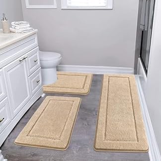 【3-teilige Badezimmerteppich-Sets】: Diese Pauwer Badteppich Sets umfassen 3 Unvollendetes, 2 Unvollendetes rechteckige Badezimmermatten (45 x 65 cm + 45 x 120 cm) und eine U-förmige Toilettenmatte (50 x 60 cm), Verdeckung alle Bereiche Ihres Badezimmers.