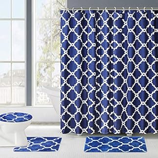 Set bestehend aus: Duschvorhang 180cm x 180cm, Badematte 50cm x 80cm, Contour-Teppich 50cm x 50cm, Toliet Verdeckung 47cm x 50cm.