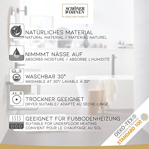 Schöner Wohnen Kollektion Badteppich 60 x 90 cm – beidseitig verwendbar – waschbar – 100% Baumwolle – einfarbig – beige