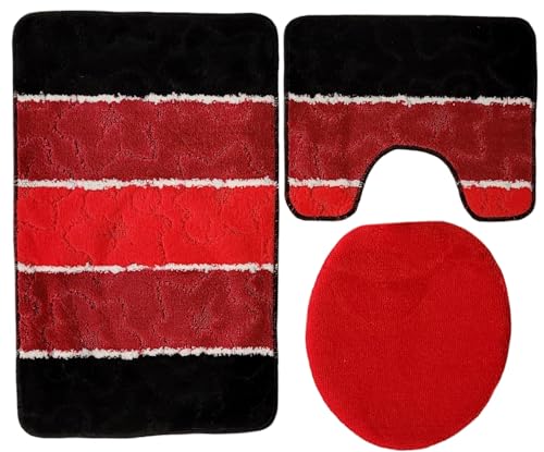 ✅ Abzweigung auch flauschige 3-teilige Badematten Garnitur in modernem Rubin