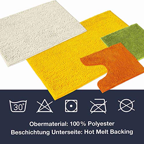 WOHLFÜHLFAKTOR – Deine neuen Warmen und Kuschelig weichen Inseln im Bad. Mit jedem Fußaufsetzen umschmeichelt die feine Hochflor Polyester Mikrofaser der Badvorleger angenehm weich deine Füße. Ein wohliges, warmes und sicheres Gefühlsregung bekannt als in Bädern mit einer Fußbodenheizung. Wahlweise in verschiedenen Größen und Farbtönen erhältlich. Farbe: Orange