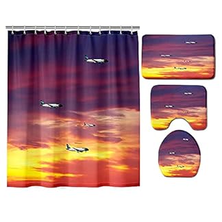 🛀【4 in 1 Badezimmer Duschvorhang Badematte】: Duschvorhang + Badematte + U-förmige Matte + Toilettendeckelabdeckung. Produktgröße: Duschvorhang 200 x 180 cm, Badvorleger 45 x 75 cm, U-förmige Matte 37.5 x 45 cm, Toilettendeckelabdeckung 37.5 x 35 cm. Die Größe des Badezimmerzubehörsets ist für die meisten Badezimmer geeignet. Natürlich unterstützen wir auch die Abwandlung.