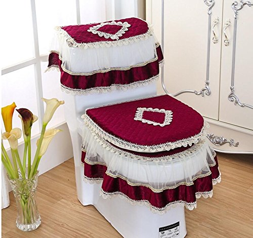 ZFF WC-Matten Anti-Rutsch-Matten Badezimmer dreiteilige Set Fabric Lace WC-Pad dreiteilige WC-Sitz WC WC WC Sitzbezug WC…