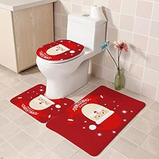 3 Teiliges Badvorleger-Set Duschmatte + Konturmatte + WC-Deckelbezug,rutschfeste Weihnachten Flanell WC Toilette Deckel…