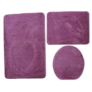 3- teiliges Badvorleger Set Ilkadim Export mit Delphin Muster, Bad Teppich 55cm X 85cm ohne Auschnit gerade für Hänge WC (Beere hell)