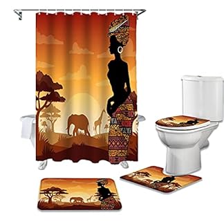€81,76Produkt kaufenBANLV Afrika Frau Giraffe Elefant Wald Duschvorhang Toilettensitzbezug Set WC Zubehör Matte Badezimmer Dekor Bad Vorhänge