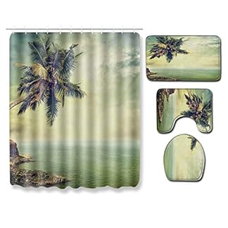 €30,00Produkt kaufenArtsbay Duschvorhang-Set mit rutschfesten Teppichen, WC-Deckelbezug, Badematte, Blütenblüte mit grünen Blättern…