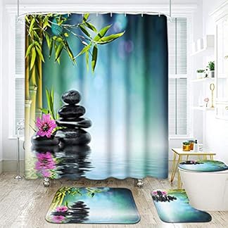 €30,00Produkt kaufenArtSocket Duschvorhang-Set, Turm, schwarzer Stein, Hibiskus, Bambus, Wasser-Zen, schöne Flora, mit rutschfesten Teppichen, WC-Deckelbezug und Badematte, Badezimmer-Dekor-Set, 182,9 x cm, 4-teilig