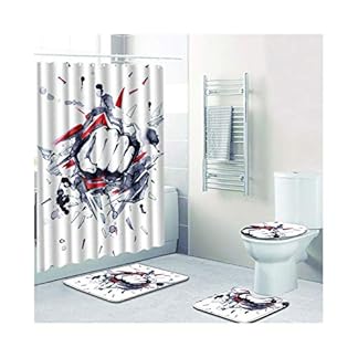 ACSEND 4-teiliges Set-Badezimmer-Teppich, Vorhang-Badematten Set (+ Badezimmer-Teppich-Cover Toilette Cover Badteppich…