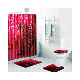 Daesar 45×75 Badezimmer Fußmatten Set, Valentine’s Day 180×180 Badvorhang Anti-Schimmel, Badematte 4 Teilig