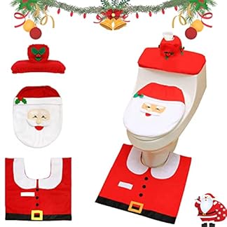 KUNHUI Toilettensitzabdeckung, Weihnachtsmann WC-Sitzbezug Set, 3 Stücke Wärmer Dehnbar Waschbar WC Weihnachtsdeko WC-Sitz Cover, Toilettendeckel Teppich Badezimmer Neuheit Weihnachtsdekoration Rot