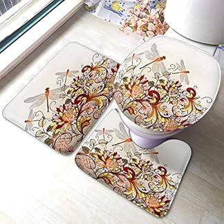 €24,99Produkt kaufenSet 3 Teilig Badvorleger Blume Schöne Blume Hintergrund Mit Bunten Ornament Und Fliegende Libelle Badgarnitur Badematten Waschbar Dekorative Badezimmer Set, Für Spa, Wc-Sitz Bezug