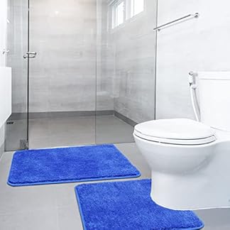 SOANNY Badematten Set 2-teilig, Mikrofaser Badezimmerteppich, rutschfest & Waschbar, 50×80 cm Badvorleger & 50×50 cm Toilettenmatte, Blau