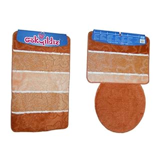 €32,99Produkt kaufenAnka Textil Badgarnitur 3-Teilig Badmatte Bad Set 85x55cm Hänge WC Streifen Eckig (Terrakotta)