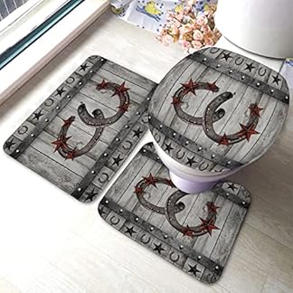 €3,00Produkt kaufenBadezimmerteppich-Set, 3-teilig, rustikaler Holz-Texas-Stern, rostiges Hufeisen-Bauernhaus-Planken-Western, Badematten-Set, WC-Konturenmatte, Deckelbezug, rutschfeste Bodenmatten