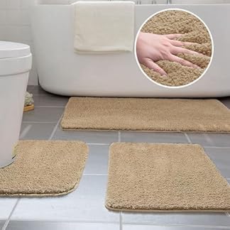€42,08Produkt kaufenCeneco 3 Stück Mikrofaser Badematten für Badezimmer rutschfeste Badematten Waschbar 40×50cm U Form Toilettenmatte, 50×60cm Kleiner Badeteppich, 50×80cm Badewannenteppich (Khaki)