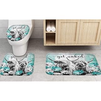 €52,37Produkt kaufenGet Naked Badematten-Set, Farmhouse Highland Cow Teal Floral Badezimmermatten-Set mit Badteppich, lustige Westernkuh Landhausstil Konturmatte und WC-Deckelbezug (Blaugrün)